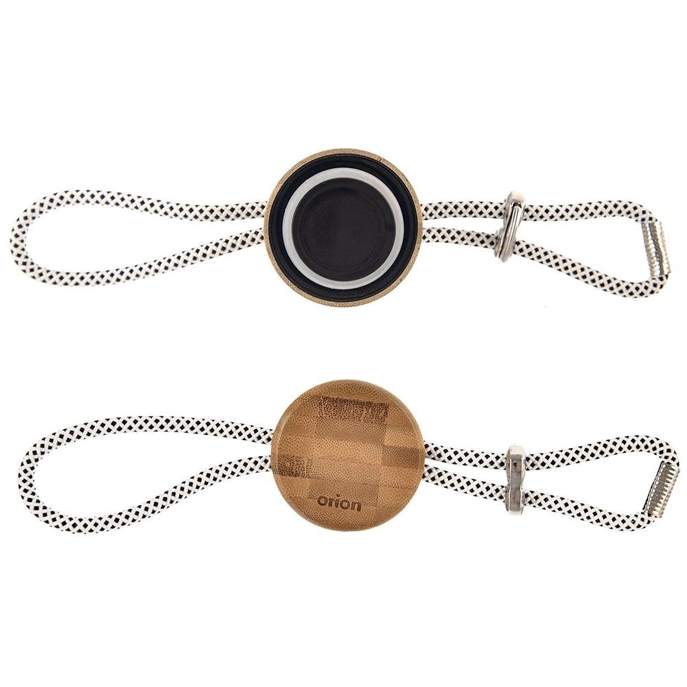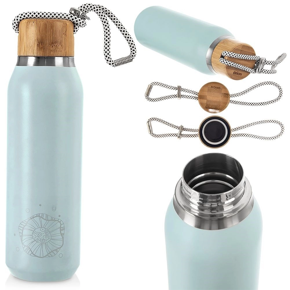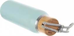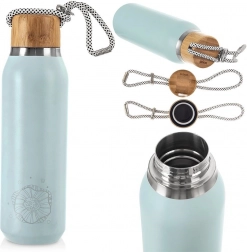 Prirodni bambusov čep sa zavrtnim navojem i silikonskim prstenom osigurava nepropusnost. Integrirana špagica olakšava nošenje i vješanje.
