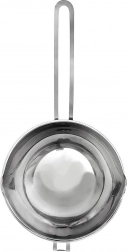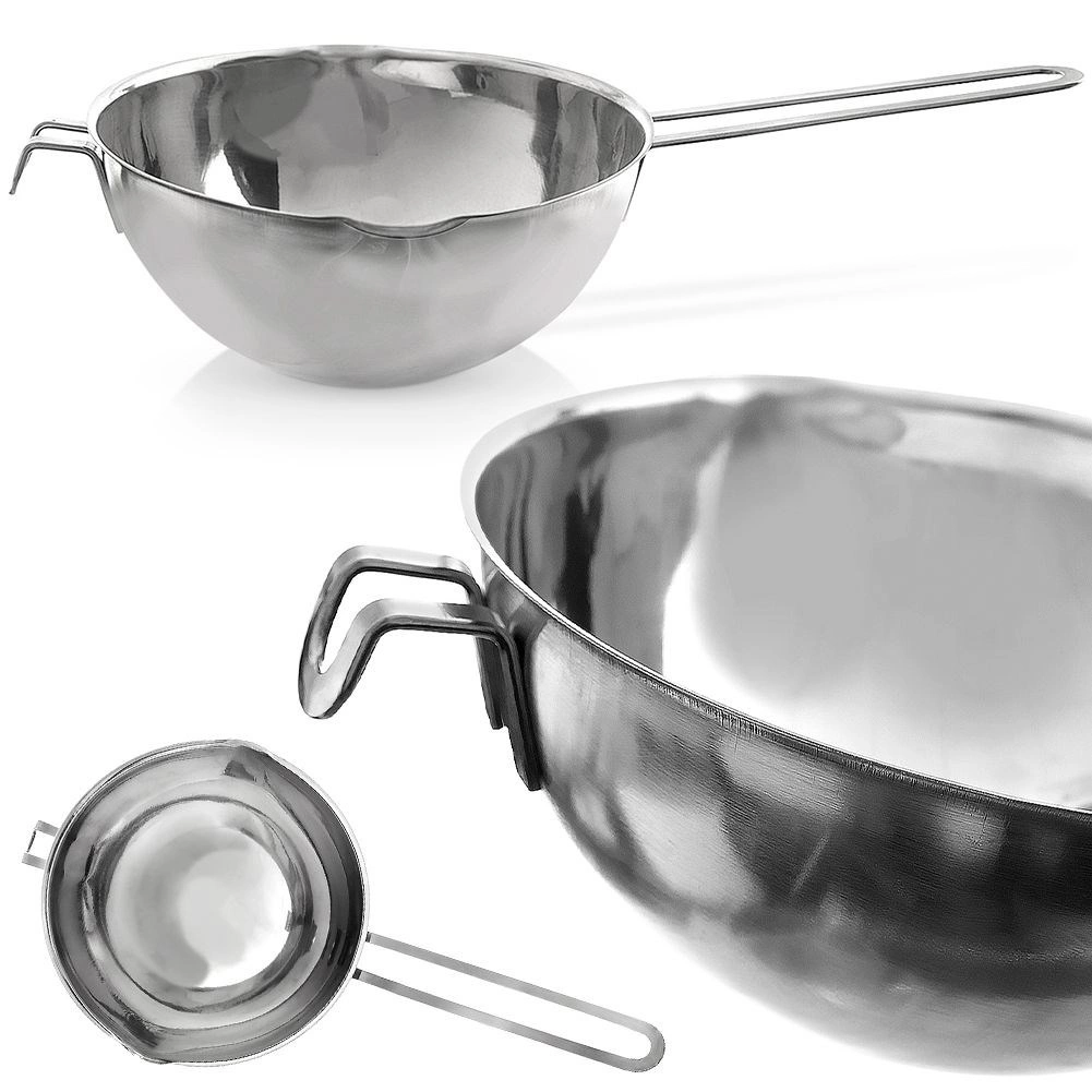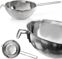 Ova posuda od nehrđajućeg čelika za vodenu kupelj dizajnirana je za precizno i blago zagrijavanje sastojaka bez rizika od zagorijevanja. Savršena je za kućne slastičare i ljubitelje ručno rađenih svijeća – koristit ćete je za topljenje čokolade, maslaca i voska. Praktična duga drška osigurava siguran hvat, a kukica omogućuje da posuda čvrsto stoji na rubu lonca.