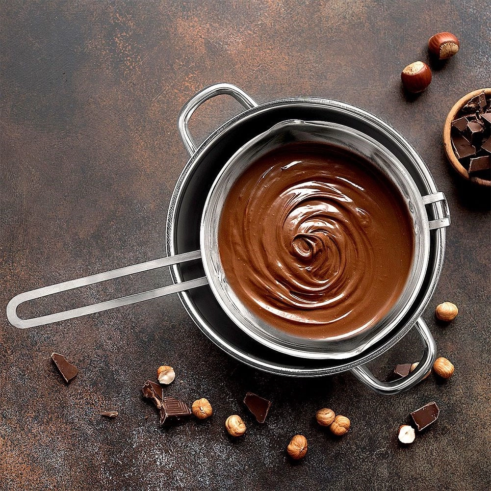 Ravnomjerno i bez zagorijevanja otopite čokoladu, maslac ili vosak zahvaljujući robusnoj inox posudi namijenjenoj vodenoj kupelji.