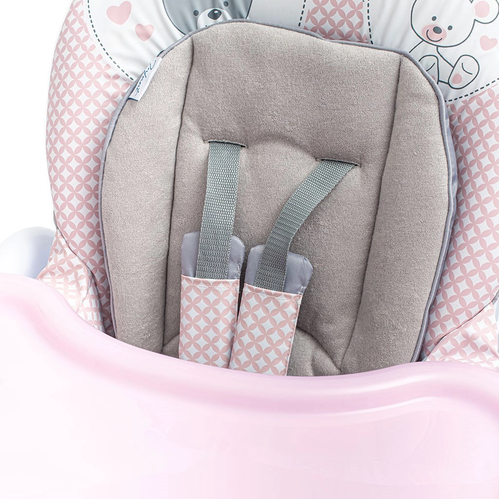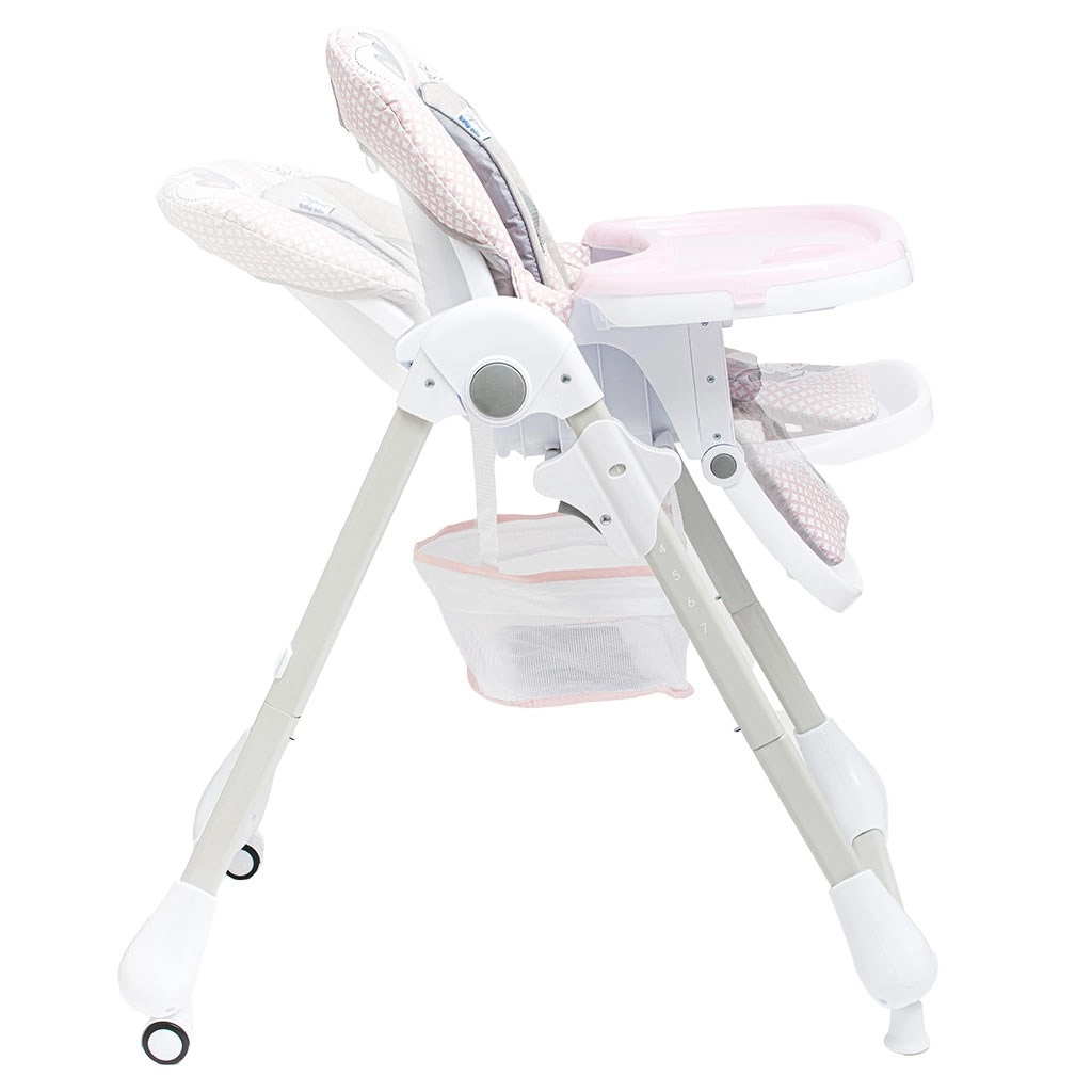 Dječja hranilica BABY MIX Infant ružičasta spaja udobnost, sigurnost i jednostavno održavanje u jednom. Zahvaljujući 7-stupanjskom podešavanju visine lako je prilagodite visini stola i rastu djeteta. Troslojni naslon i oslonac za noge u dva položaja osiguravaju pravilnu ergonomiju pri hranjenju i odmoru. Praktični dvostruki, odvojivi pladanj pruža prostor za jelo i igru, dok donja košarica drži sve potrebno nadohvat ruke.