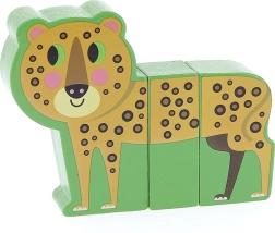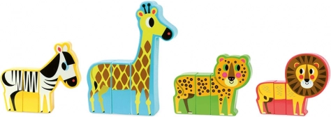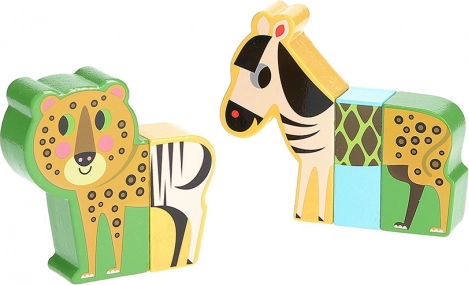 Drvene puzzle Veseli safari donose djeci od 2 godine zabavu na drugačiji način: svaka je životinjica sastavljena od masivnih dijelova sa skrivenim magnetima koji glatko prianjaju. Dijelovi se mogu izmjenjivati između pojedinih životinja i stvarati zabavni “hibridi” koji potiču maštu i znatiželju.