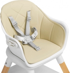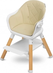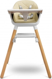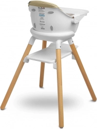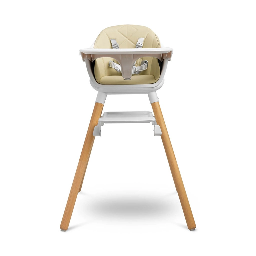 Profilirani pladanj s odvojivim gornjim dijelom minimalizira nered pri hranjenju i olakšava čišćenje. Presvlaka od ekološke kože zajedno s plastičnim sjedalom dovoljno je samo obrisati. Za maksimalnu sigurnost brinu četiri masivne drvene noge s protukliznim završecima i petotočkasti podesivi sigurnosni pojas. Proizvod ispunjava normu EN 14988:2017+A1:2020.