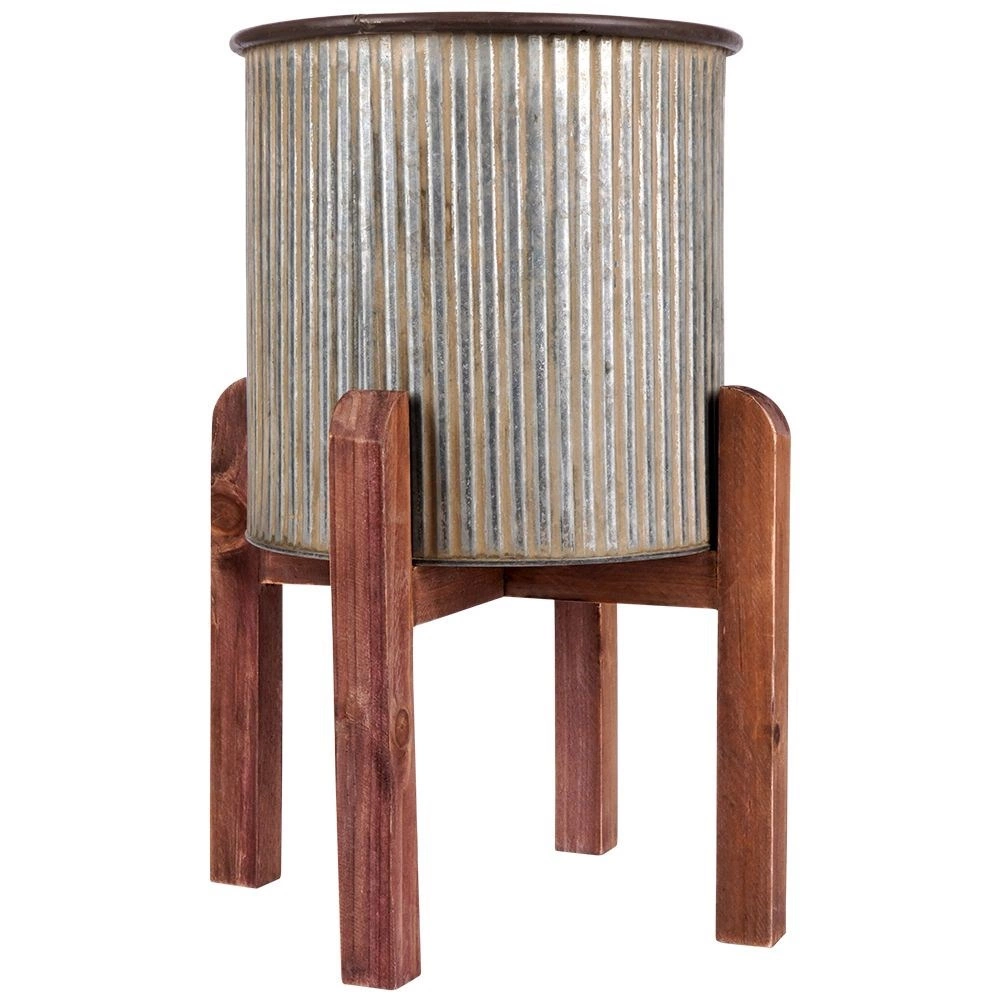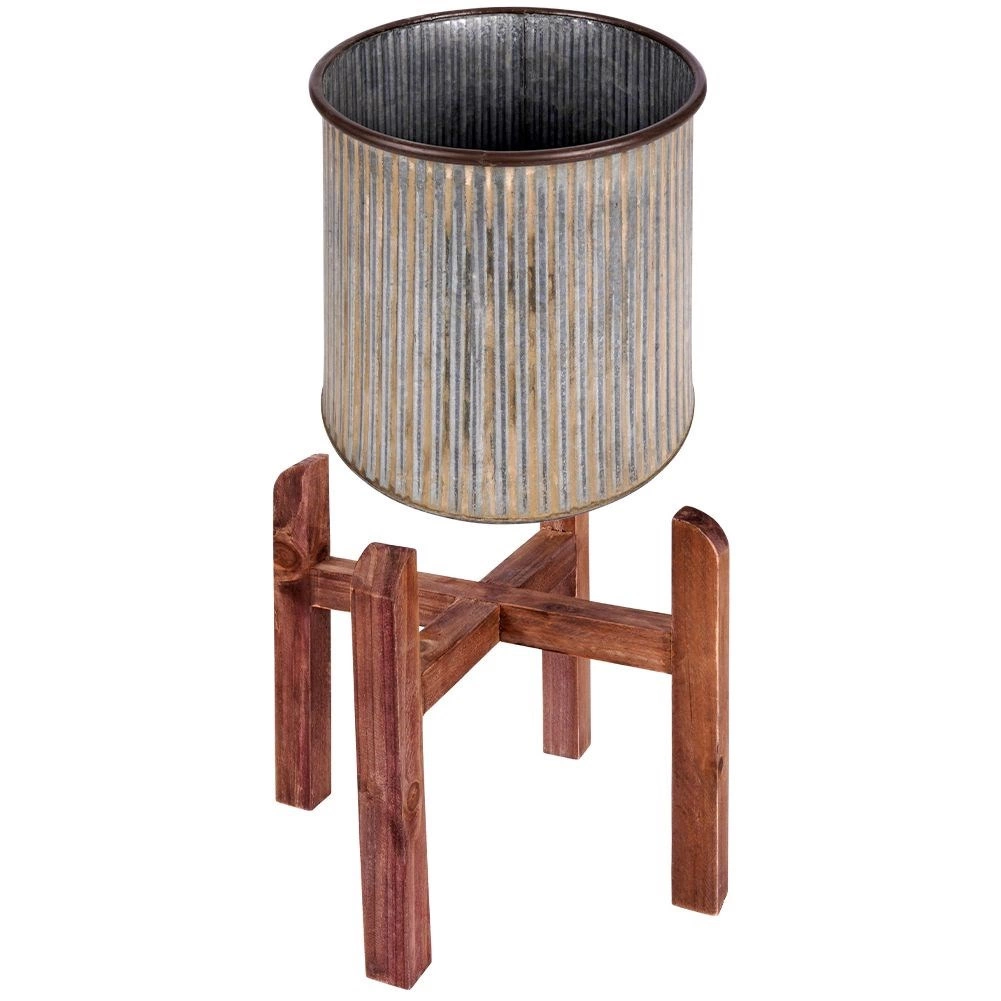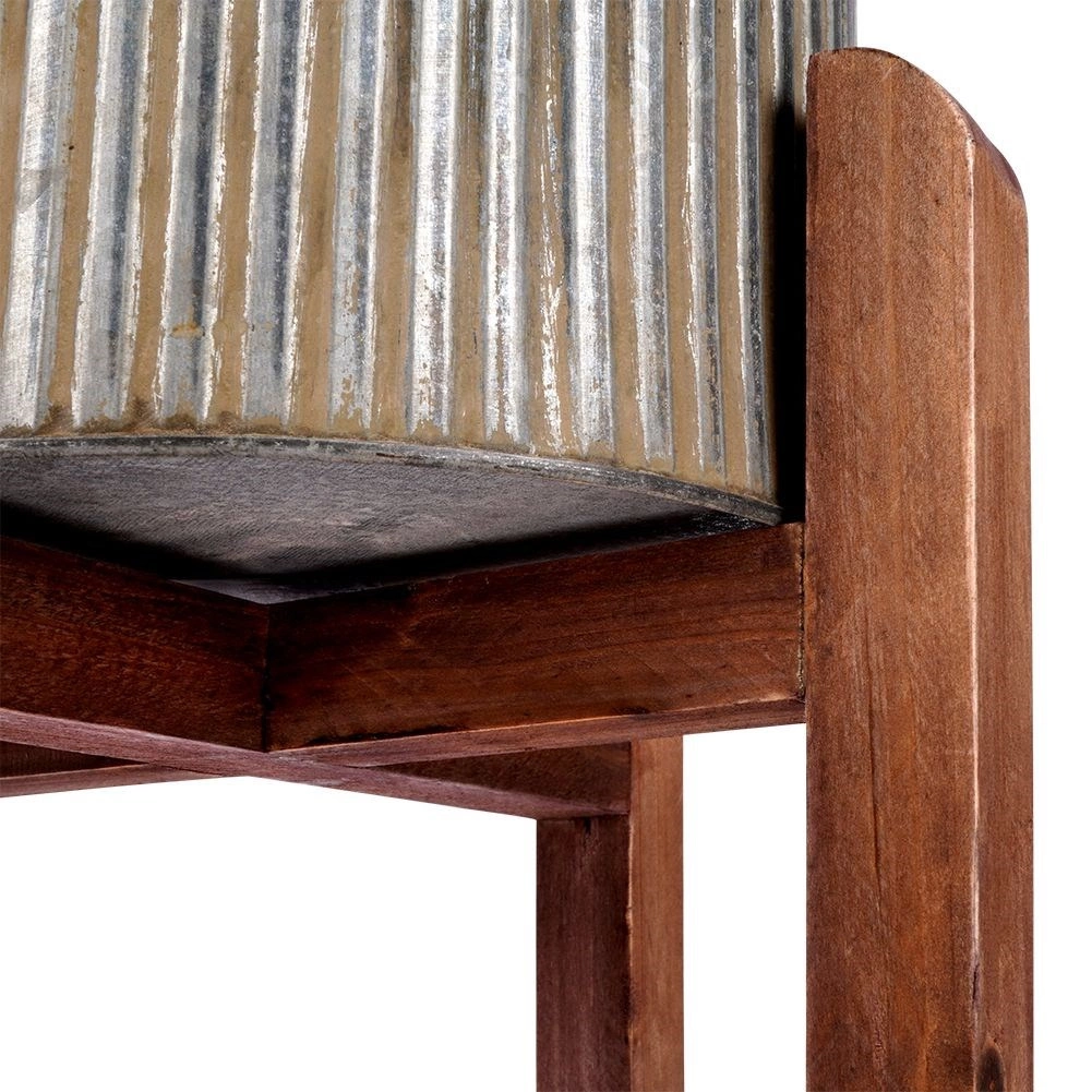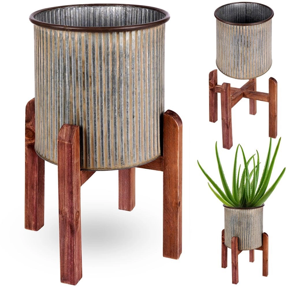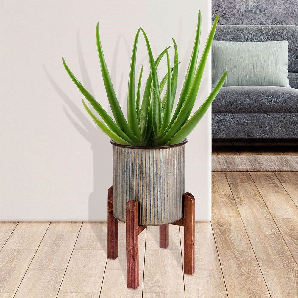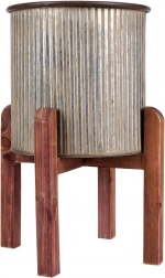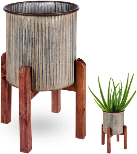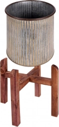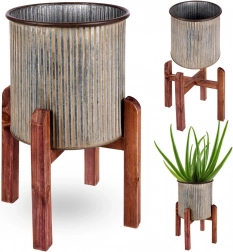 Ova dizajnerska tegla na postolju naglasit će ljepotu vaših biljaka i pretvoriti ih u dojmljiv dekorativni element. Metalna posuda s vertikalnim rebrima izgleda elegantno i ujedno je izdržljiva, dok drveno postolje daje topao prirodni naglasak i osigurava čvrstu potporu.
