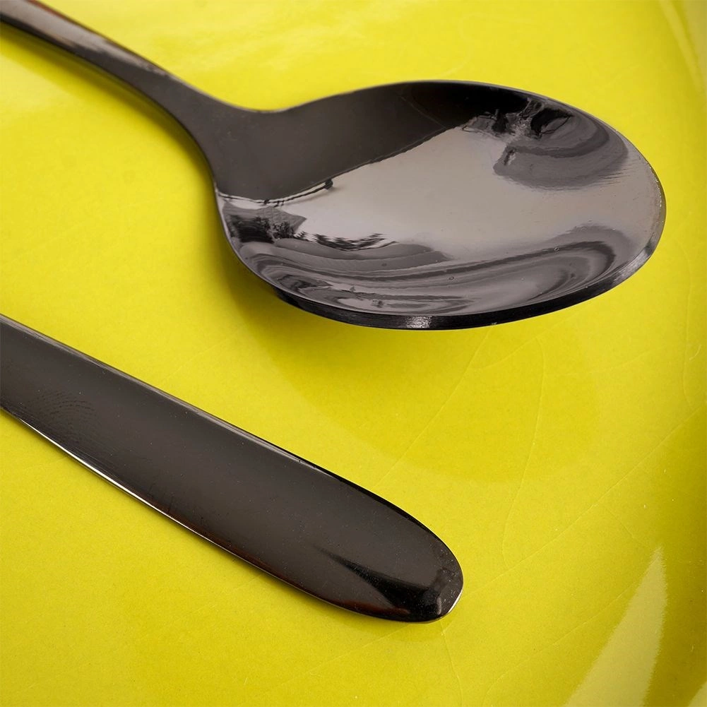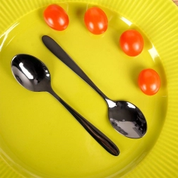 Set od 2 čajne žličice u dubokoj crnoj boji spaja elegantan dizajn i svakodnevnu praktičnost. Izrađene od kvalitetnog nehrđajućeg čelika, izdržljive su, dobro leže u ruci i lijepo se uklapaju s klasičnim i modernim posuđem. Prikladne za posluživanje kave, čaja i deserata.