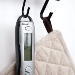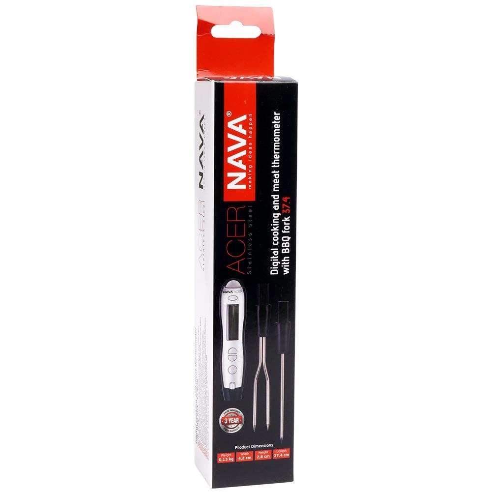 Digitalni kuhinjski termometar ACER spaja precizno mjerenje temperature s udobnim rukovanjem. Zahvaljujući dvama nastavcima – nehrđajućoj sondi i vilici – lako ćete izmjeriti unutarnju temperaturu mesa i tekućina te sigurno okretati odreske ili kobasice na roštilju. Pozadinski osvijetljen zaslon osigurava čitljivost u svim uvjetima, a ergonomska drška ugodno leži u ruci.
