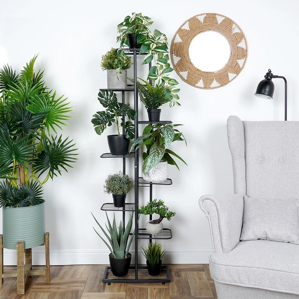 Ovaj višerazinski stalak za cvijeće idealan je izbor za ljubitelje zelenila koji žele biljke izložiti vertikalno i pritom uštedjeti podni prostor. Zahvaljujući kompaktnoj širini i visini od 142 cm stvara dojmljiv zeleni zid u dnevnom boravku, kuhinji, radnoj sobi ili na natkrivenom balkonu.