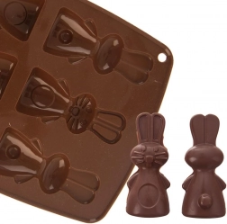 Ovaj smeđi silikonski kalup omogućuje odjednom pripremiti do 6 simpatičnih zečića. Zahvaljujući fleksibilnom, neljepljivom materijalu, lako ćete izvaditi gotove kekse, praline ili čokoladice s detaljnim reljefom. Kalup je lagan, kompaktan i ne upija mirise ni okuse.