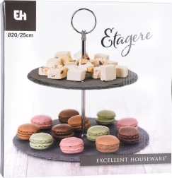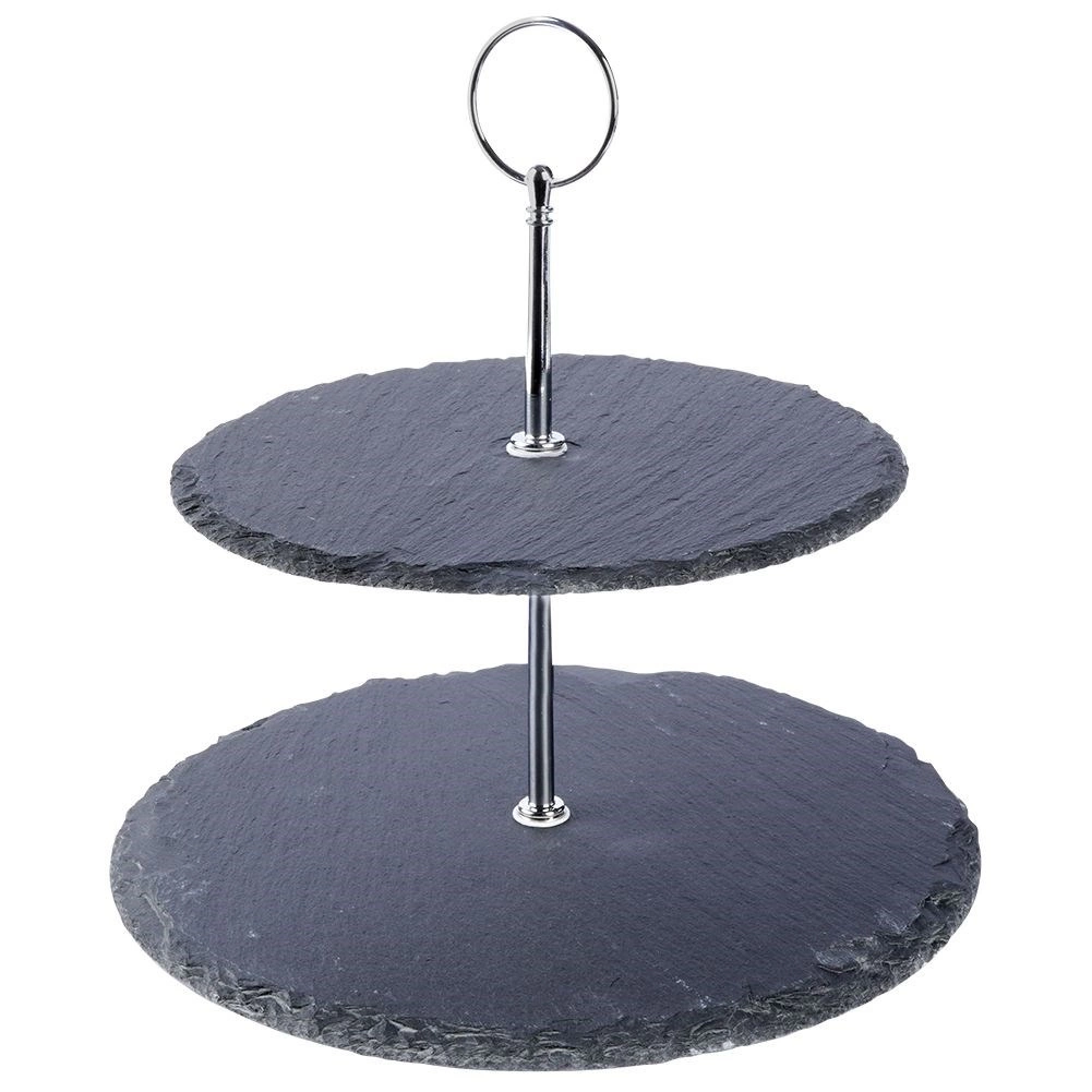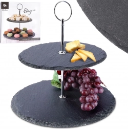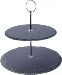 Dodajte svom stolu dozu profinjenosti s dvoslojnim etažerom od prirodnog škriljevca visine 23 cm. Dva okrugla pladnja različitog promjera pružaju dovoljno mjesta za cupcakeove, kekse, kolačiće i slane kanapee. Prirodni škriljevac osvaja rustikalnim izgledom i izvrsno pristaje i modernim i klasično uređenim interijerima.