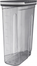 Održavajte red i svježinu u svojoj kuhinji. Ovaj visoki, prozirni spremnik s tamnosivim poklopcem nudi jednostavno doziranje zahvaljujući preklopnom izljevniku te preciznu kontrolu količine zaslugom bočne skale od 500 do 4000 ml. Profilirani oblik dobro leži u ruci i omogućuje udobno sipanje bez rasipanja.