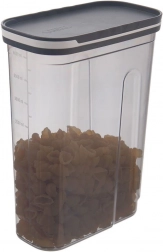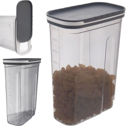 Praktičan spremnik s dozirajućim poklopcem zapremnine 4 l za brašno, šećer, rižu, žitarice ili pahuljice. Zahvaljujući prozirnom tijelu uvijek vidite sadržaj, hermetički poklopac čuva namirnice dulje svježima, a integrirana mjerica sa strane olakšava precizno doziranje. Pogodan za hladnjak, zamrzivač i mikrovalnu, sigurno pranje u perilici posuđa.