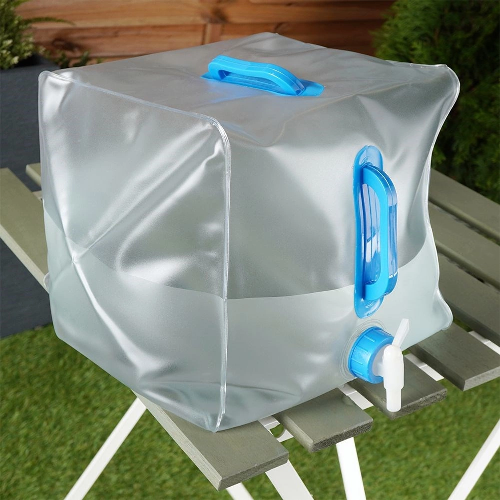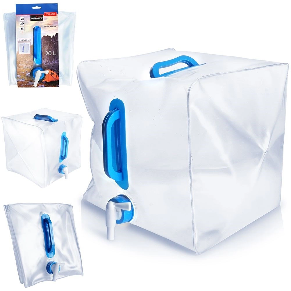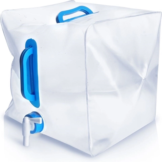Sklopivi kanister za pitku vodu zapremine 20 litara izrađen je od kvalitetne prozirne plastike koja je izdržljiva, a ujedno lagana. Ugrađeni pipac omogućuje kontrolirano točenje bez prolijevanja, a ergonomske ručke olakšavaju prenošenje i pun spremnik.