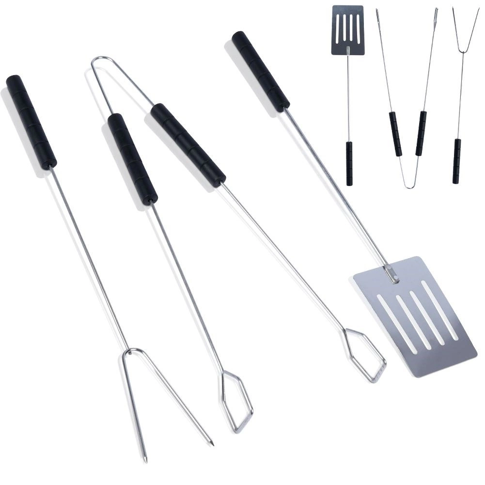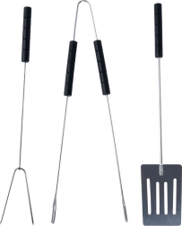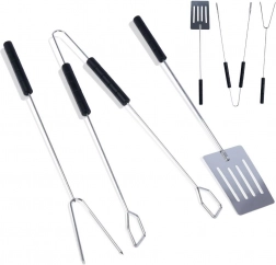Ovaj univerzalni set za roštilj idealan je za okretanje, posluživanje i precizno hvatanje odrezaka, povrća ili ribe. Duge drške omogućuju siguran rad iznad žara, a čvrsta konstrukcija od kromiranog čelika odolijeva visokim temperaturama.