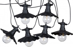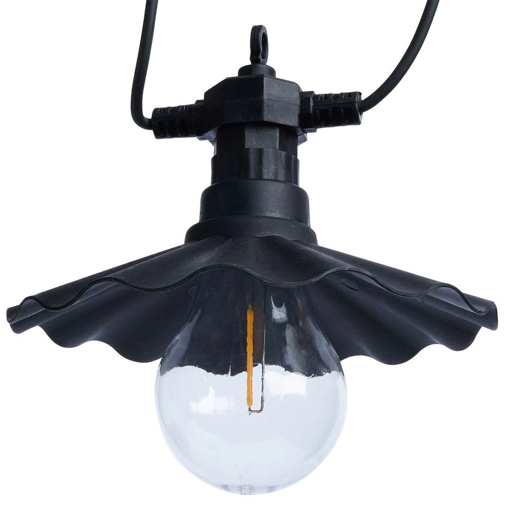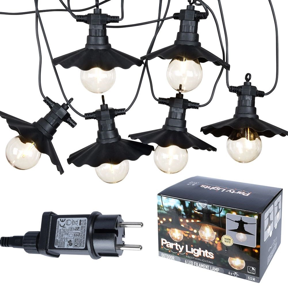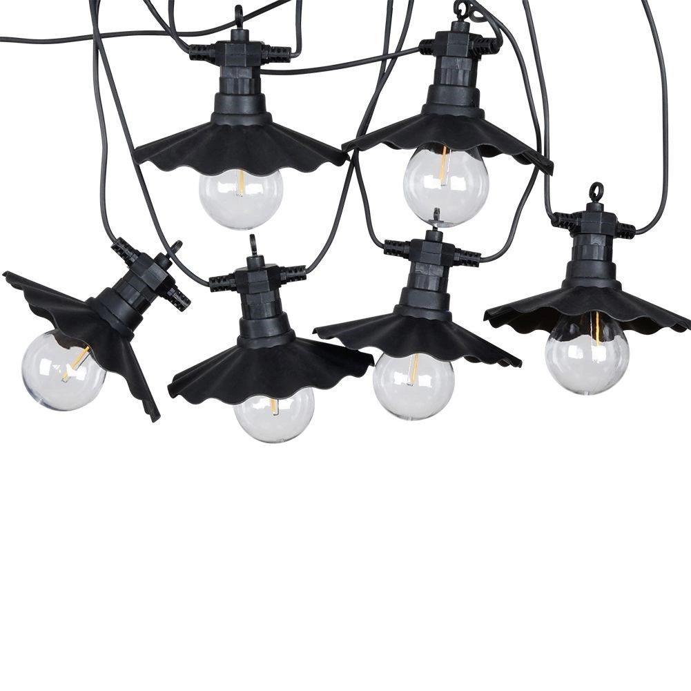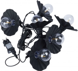 Ova dekorativna svjetlosna lančana girlanda idealna je za cjelogodišnju upotrebu na otvorenom i u interijeru. Šest prozirnih LED žarulja s toplim tonom i stilskim crnim sjenilima stvara ugodno ambijentalno osvjetljenje za druženje s obitelji i prijateljima. Zahvaljujući mrežnom napajanju i zaštiti IP44 spremna je odoljeti uobičajenim vremenskim utjecajima.