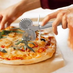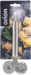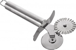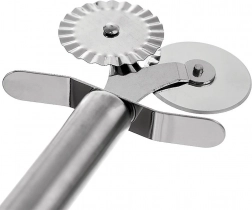 Univerzalni rezač od nehrđajućeg čelika s dva rezna kotačića olakšava pripremu domaće tjestenine, raviola, keksa i slanih krekera. Glatki kotačić reže savršeno ravno, dok ukrasni valoviti kotačić stvara efektne nazubljene rubove i ujedno pomaže zapečatiti rubove tijesta kod jastučića ili raviola.