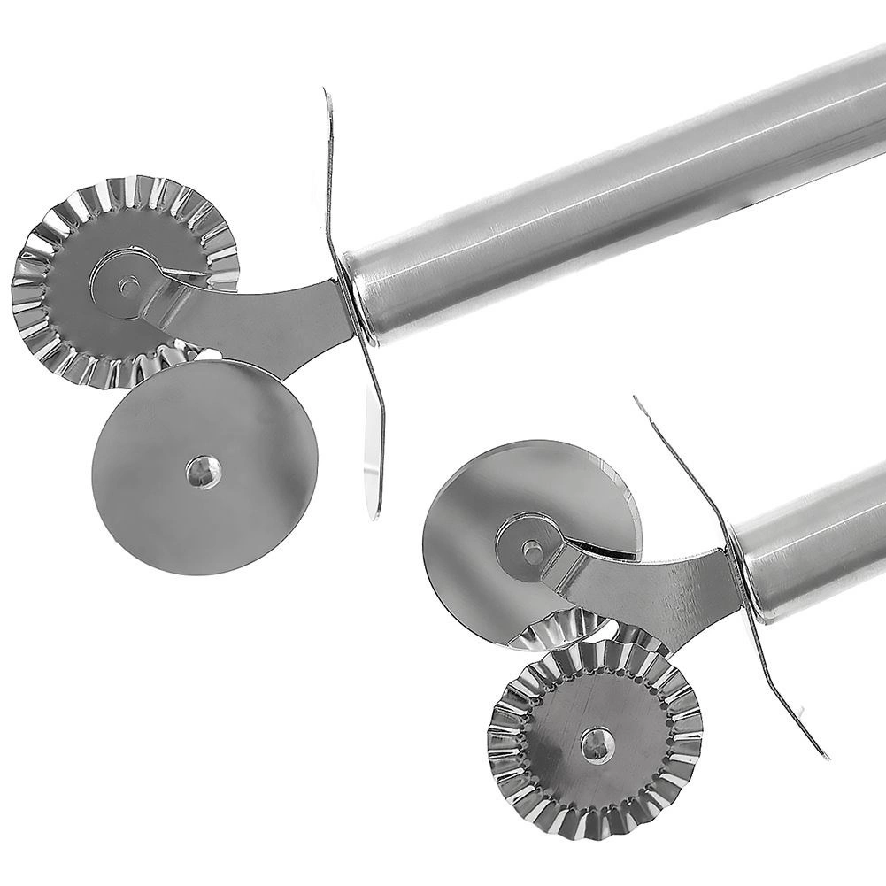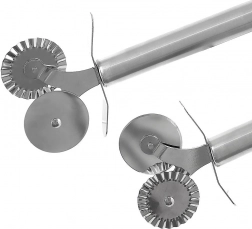Jedan glatki kotačić za čiste, ravne rezove i drugi valoviti za ukrasne nazubljene rubove i zaptivanje tijesta – idealno za raviole, kekse i tartlete.
