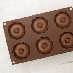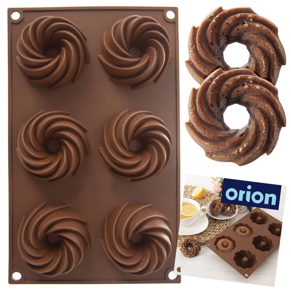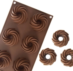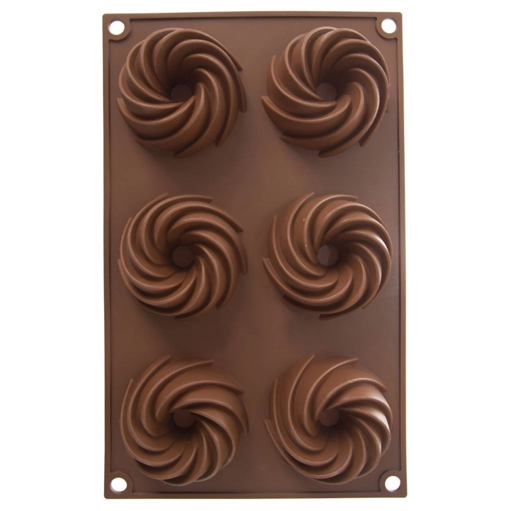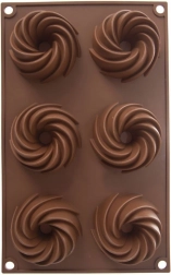 Praktičan raspored 6 udubljenja s ukrasnim spiralnim oblikom za ravnomjerno pečenje i atraktivan izgled deserta.