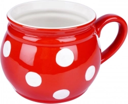 Uživajte u omiljenim toplim i hladnim napicima u velikom stilu. Ova crvena keramička šalica s bijelim točkicama ističe se svojim klasičnim dizajnom i praktičnim oblikom koji savršeno leži u ruci. Odličan je izbor za kućnu upotrebu i uklapa se u svaki stolni pribor.