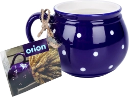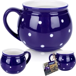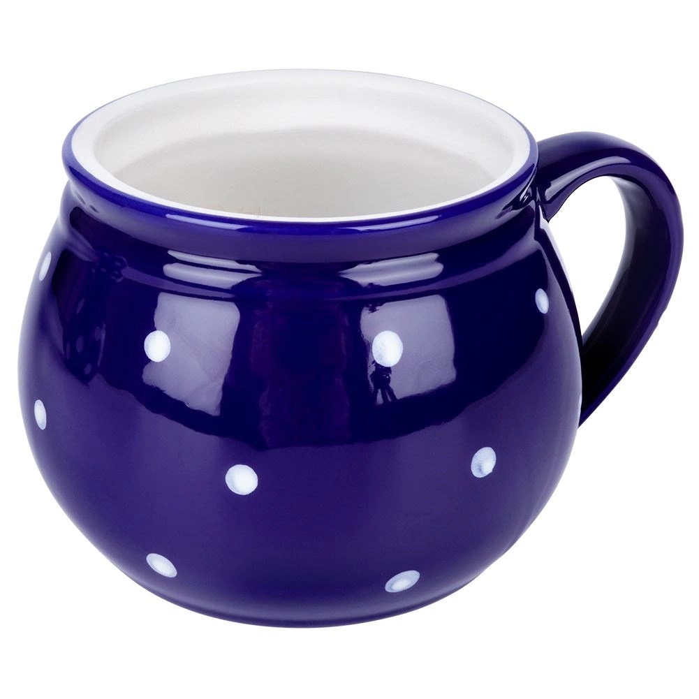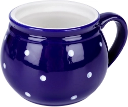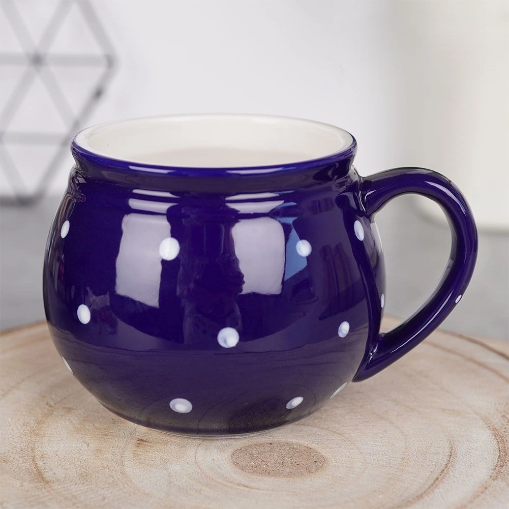 Stilna keramička šalica s ručkom zapremnine 200 ml u tamnoplavoj boji s bijelim točkicama idealna je za kavu, čaj, kakao i kuhano vino. Ima udobnu ergonomsku ručku, klasičan bezvremenski dizajn te je zahvaljujući kvalitetnoj keramici izdržljiva i sigurna za kontakt s hranom.