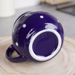 Elegantna šalica u navy nijansi s bijelim točkicama odlično upotpunjuje svakodnevno posluživanje. Njen manji volumen od 200 ml razveselit će ljubitelje manjih porcija napitaka, a oblik „bačvice” izvrsno leži u ruci. Prikladna za vruće napitke – od jutarnje kave, preko biljnih čajeva, do zimskog kuhanog vina.