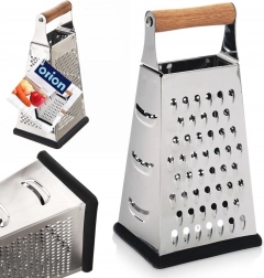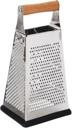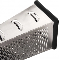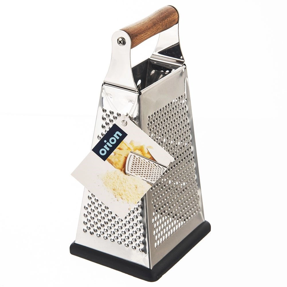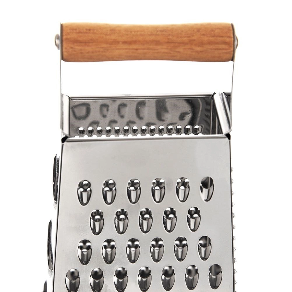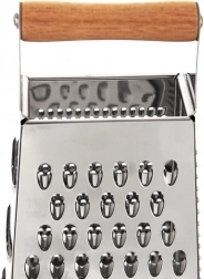 Otkrijte svestrani kuhinjski ribež koji olakšava pripremu povrća, voća, sireva i začina. Kućište od nehrđajućeg čelika osigurava dugotrajnost i oštre oštrice, dok udobna ručka od bagremova drva i protuklizno gumeno postolje jamče siguran hvat i stabilnost pri radu.