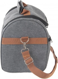 Za maksimalnu udobnost torba ima odvojivi i podesivi naramenica remen, čvrstu ručku za brzo prenošenje i prednji džep s patentnim zatvaračem za sitnice. Dvostruki patentni zatvarač omogućuje brz pristup sadržaju. Stilska kombinacija sive boje s smeđim trakama pristaje i gradu i prirodi.