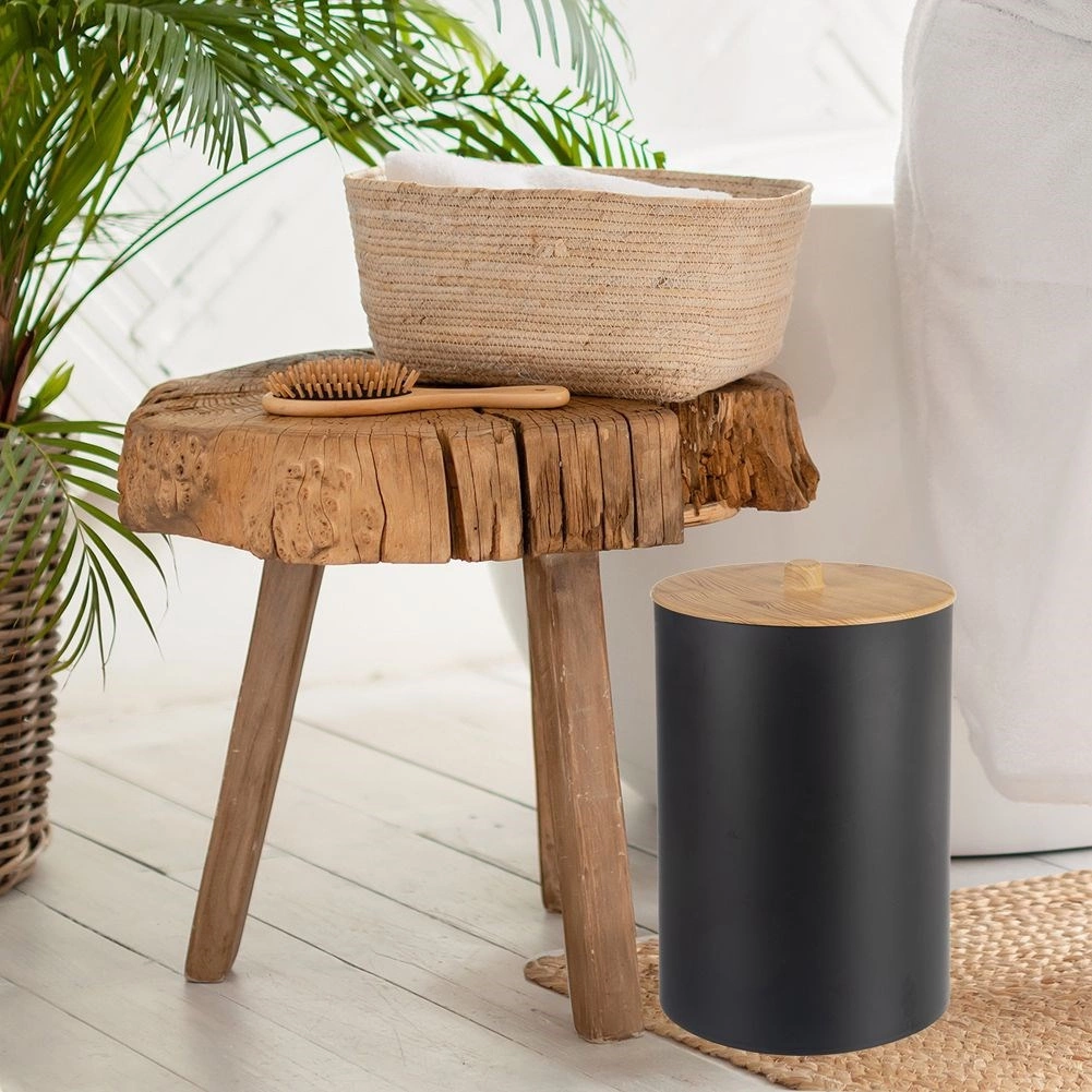 Minimalistički crni izgled s poklopcem u dekoru drveta djeluje dekorativno i lako se uklapa u različite stilove interijera. Zahvaljujući optimalnim dimenzijama kantu možete smjestiti na pod, na policu ili je sakriti u ormarić.