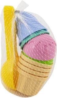 Ovaj kreativni set omogućuje djeci da „prodaju” sladoled i vježbaju motoriku, maštu i socijalne vještine. Izdržljivi plastični korneti i kuglice u ugodnim nijansama ružičaste, plave, zelene, bež i bijele lagani su, lako se peru i spremni su za beskrajnu igru.