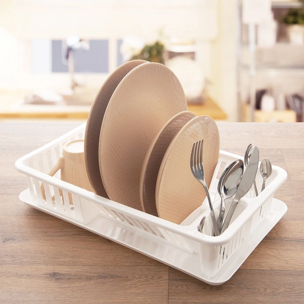 Promišljena organizacija pruža mjesto za do 12 tanjura, prostor za šalice i zdjelice te 2 odjeljka za pribor. Ocjeđivač je lagan, stabilan i prikladan za moderne i klasične kuhinje. Za maksimalnu udobnost može se prati u perilici posuđa.