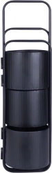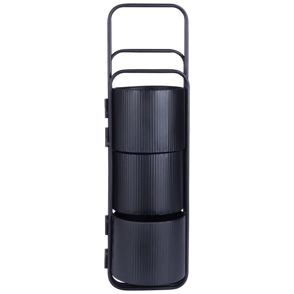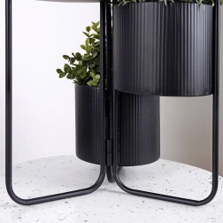 Mat crna završna obrada i rebrasti dizajn posuda daju moderan izgled, dok čvrsta potpuno metalna konstrukcija osigurava izdržljivost i stabilnost. Okretni i podesivi držači omogućuju prilagodbu rasporeda pojedinih postolja uvjetima u prostoriji ili na balkonu.