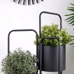Otkrijte elegantan i praktičan način za izlaganje omiljenih biljaka. Ovaj metalni stalak za cvijeće u industrijskom loft stilu ima tri razine s postoljima dimenzija 14 × 12,5 cm za tegle promjera do 13,5 cm. Zahvaljujući kompaktnim dimenzijama 33 × 24 × 57 cm štedi prostor, a istovremeno stvara upečatljivu dekoraciju u dnevnoj sobi, kuhinji, radnoj sobi i uredu.