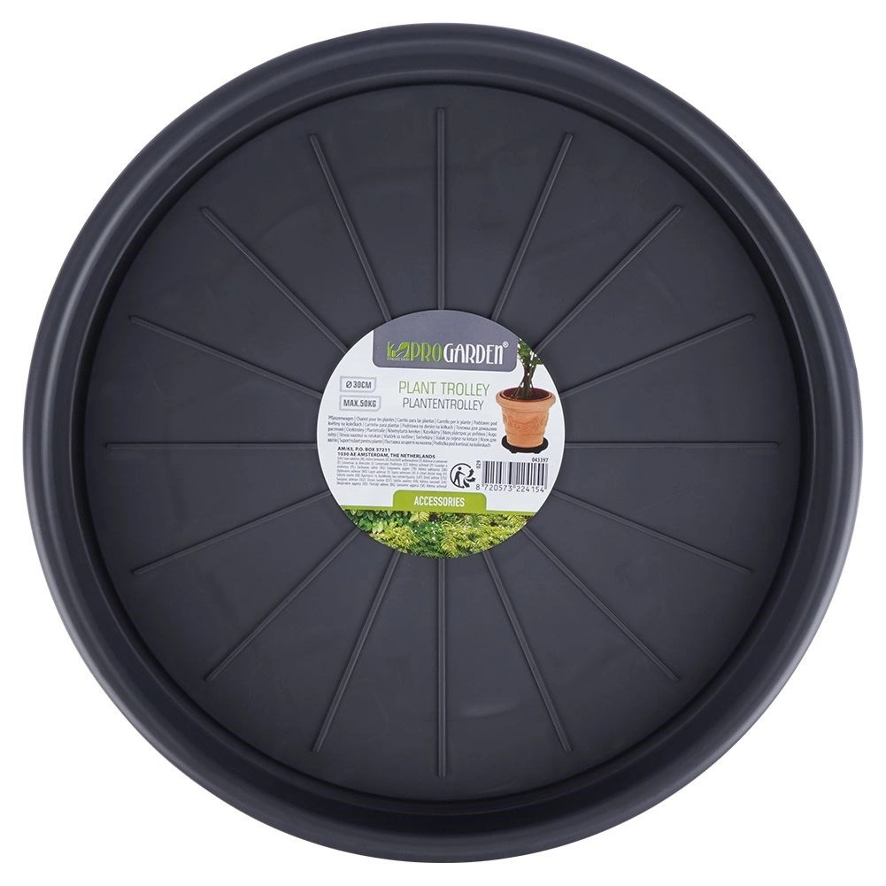 Praktična podloga za cvjetnjak s četiri kotačića za jednostavno premještanje biljaka u domu i na otvorenom. Ima promjer 30 cm, nosi do 50 kg i prikladna je za cvjetnjake do Ø 27 cm. Izrađena od izdržljive plastike u tamnosivoj boji.