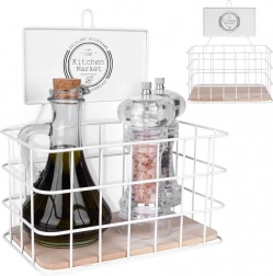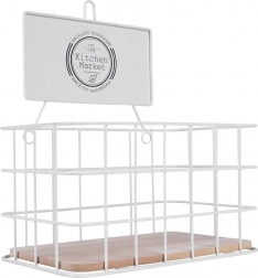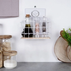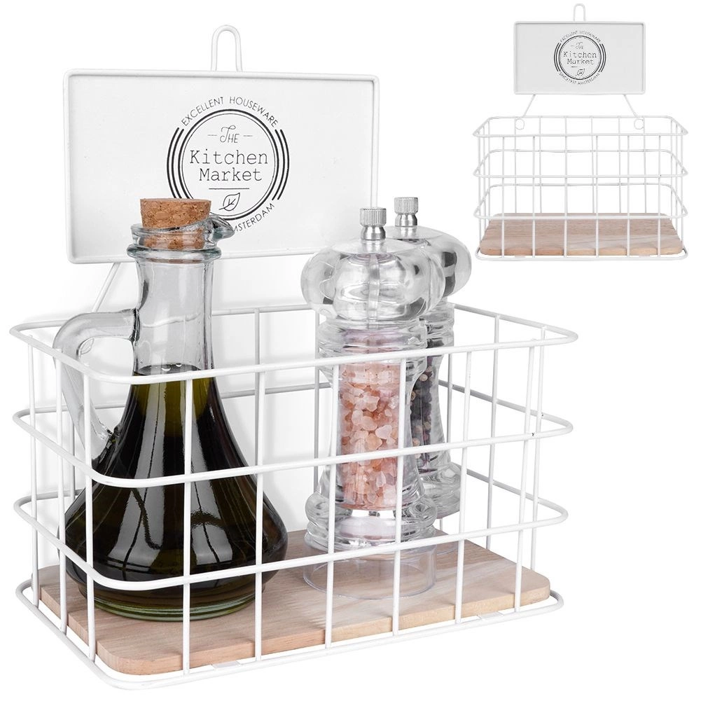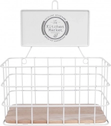 Ova bezvremenska kuhinjska polica u kombinaciji bijelog metala i hrastovog drva savršeno se uklapa u moderne i klasične interijere. Otvoreni žičani dizajn osigurava preglednost i brz pristup pohranjenim predmetima, a dekorativni natpis „The Kitchen Market” dodaje šarm.