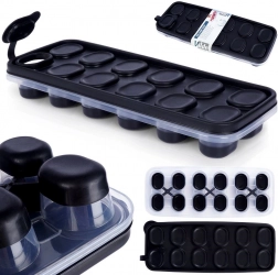 Zahvaljujući silikonskoj bazi kockice oslobađate lako i bez uvijanja kalupe. Od kvalitetnog, za hranu sigurnog materijala u crnoj izvedbi – izdržljivo, higijenski i prikladno za perilicu posuđa.