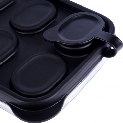 Ova zatvoriva kalupa za led dimenzija 25 × 10 × 3,5 cm izvrstan je pomoćnik u svakom kućanstvu. Poklopac s praktičnim otvorom za ulijevanje omogućuje udobno punjenje i ravnomjernu raspodjelu vode u sve komore, dok brtvena konstrukcija minimalizira prolijevanje i upijanje mirisa iz zamrzivača.