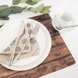 Podloga za stol s realističnim drvenim dekorom praktičan je i dekorativan dodatak za kuhinju ili blagovaonicu. Zahvaljujući dimenziji 43 × 30 cm savršeno pristaje ispod tanjura, štiti stolnu plohu od mrlja i ogrebotina te ujedno ističe vaš servis za jelo.