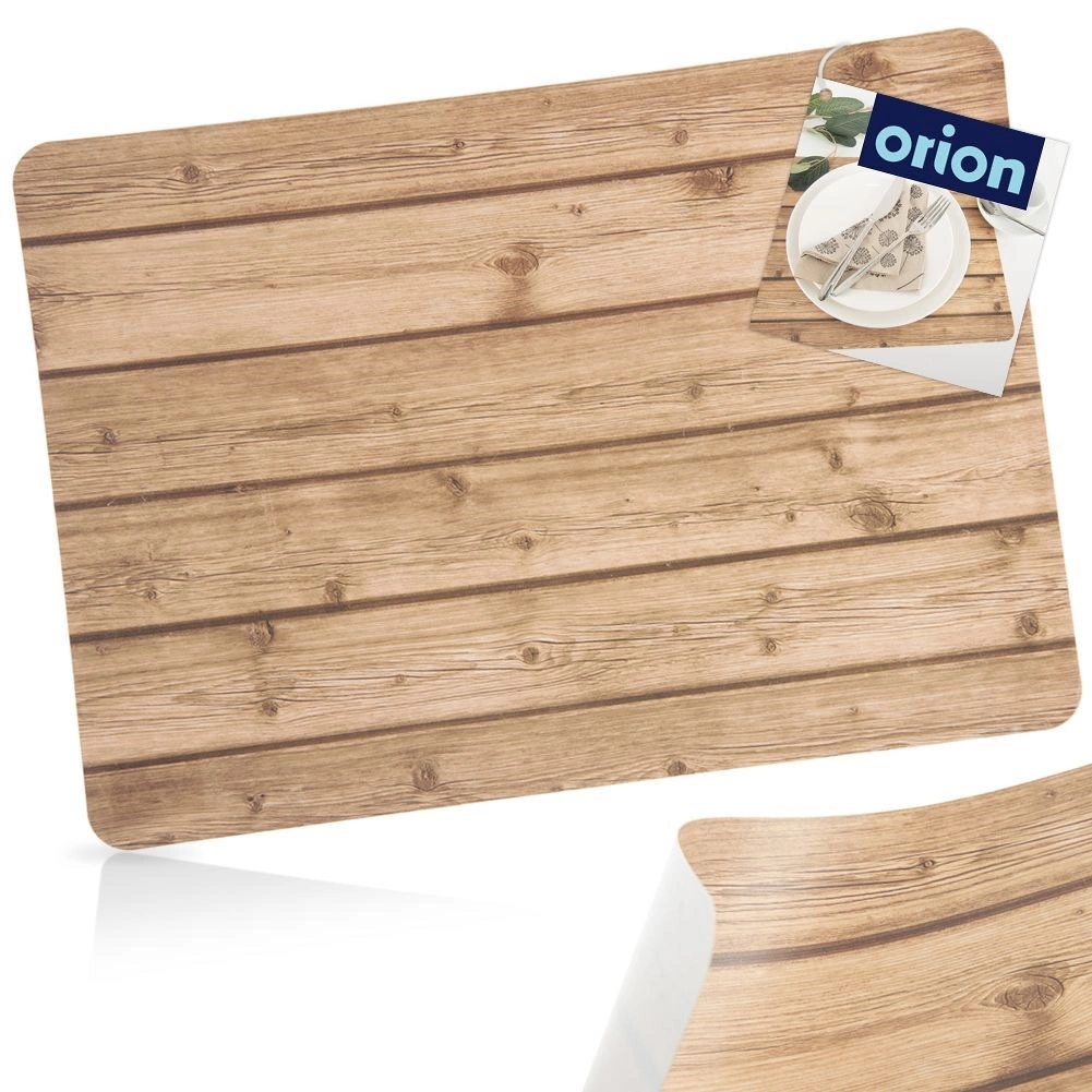 Ovaj kvalitetan kuhinjski podmetač izvrstan je dodatak za svakodnevno blagovanje i svečane prigode. Štiti površinu stola od nečistoća i ogrebotina te istodobno stvara efektno pozadje za tanjure i pribor. Dekor koji imitira drvene daske daje vašem stolu prirodan i moderan izgled.