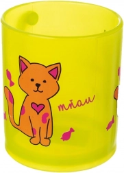 Praktična dječja šalica s veselim motivom mačke uljepšava svakodnevne navike pijenja. Zahvaljujući poluprozirnom dizajnu dijete lako vidi koliko je napitka preostalo u šalici. Lagan, ali izdržljiv materijal bez BPA osigurava sigurnu i udobnu upotrebu kod kuće i u vrtu.