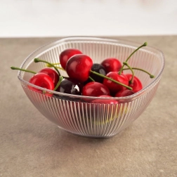 Stilska zdjelica za posluživanje s četvrtastim zaobljenim oblikom i okomitim rebranjem odlično će se istaknuti na stolu kod kuće i u vrtu. Prozirni akril naglašava boje posluženih jela, a zahvaljujući teksturi zdjelica ugodno leži u ruci.