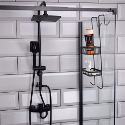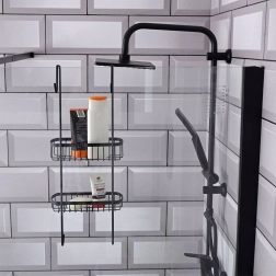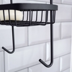Ova viseća polica za tuš dizajnirana je za vješanje na gornji rub staklene stijene tuš-kabine. Zahvaljujući dvjema žičanim košarama i donjim kukicama vaše kupaonske potrepštine ostaju uredno organizirane i uvijek pri ruci. Minimalistički loft dizajn u crnoj boji uklapa se u svaku modernu kupaonicu.