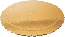 Ova zlatna okrugla podloga za tortu pruža stabilnu i estetsku osnovu za posluživanje, dekoriranje i prenošenje torti i kolača. Zahvaljujući obostranoj zlatnoj površini djeluje luksuzno s obje strane i ističe svaki svečani desert.