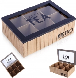 Dovedite red u svoju kolekciju čajeva elegantnom kutijom koja spaja praktično uređenje i atraktivan dizajn. Šest odvojenih pretinaca omogućuje razvrstavanje različitih vrsta i okusa čaja, dok stakleni poklopac s crnim okvirom pruža brz pregled sadržaja. Idealno za kućanstva, kafiće, bistre i urede.