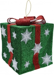 Stvorite blagdanski ugođaj u domu i vrtu s ovim izražajnim svijetlećim poklonom. Svjetlucava zelena površina, kontrastna crvena traka i bijele snježne pahulje privlače pažnju danju, a 14 LED dioda koje mijenjaju boje uvečer stvaraju ugodnu rasvjetu. Dekoracija je sklopiva, pa je nakon sezone lako pohraniti.