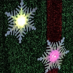 Svjetlucava zelena površina sa snježnim pahuljama i crvenom mašnom stvara upečatljiv akcent u domu i u vrtu.