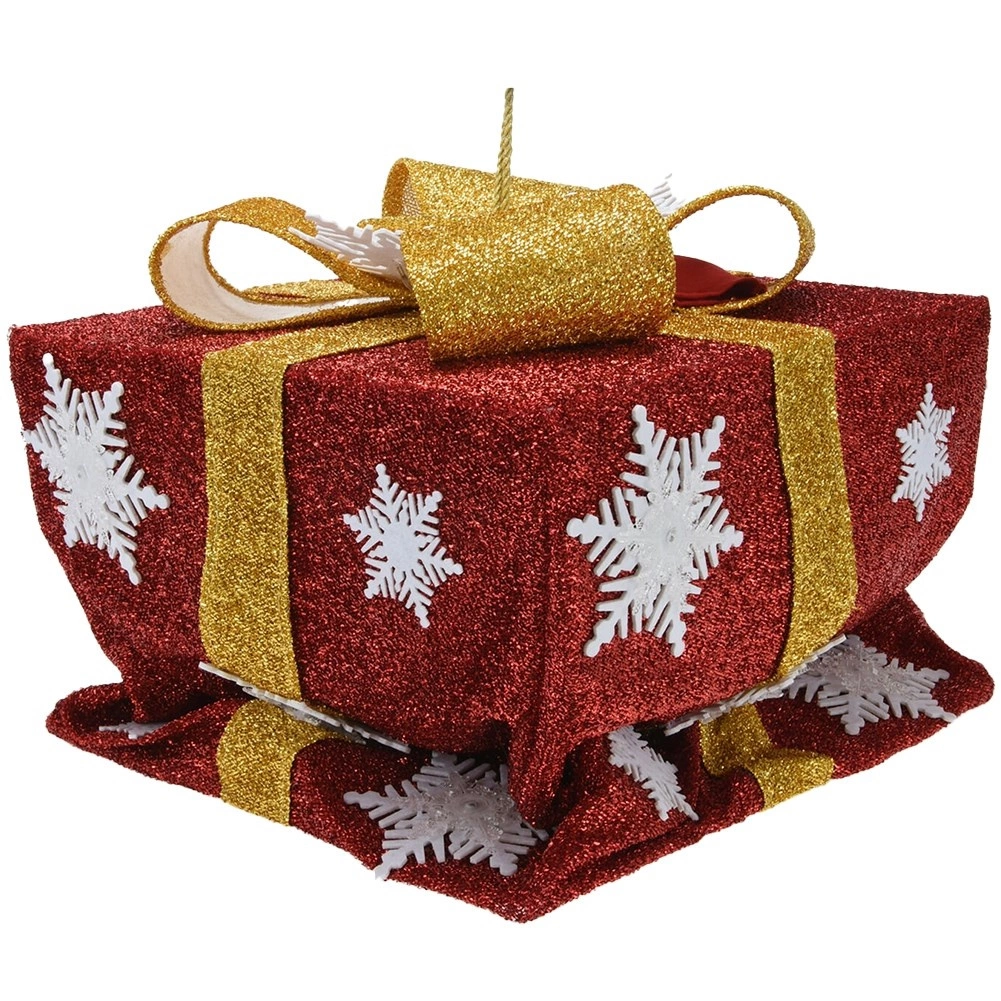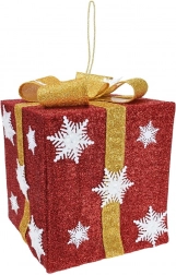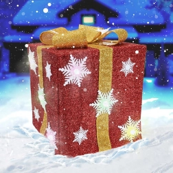 Stvorite kod kuće i u vrtu savršenu blagdansku atmosferu sa svjetlećim poklonom u intenzivno crvenoj boji, ukrašenim bijelim snježnim pahuljama i zlatnom mašnom. Integrirane LED diode (14 kom) s promjenom boja osvjetljavaju dekoraciju nježnim, atraktivnim svjetlom. Zahvaljujući sklopivoj konstrukciji od metala s dekorativnom površinom, ukras je robustan, a istodobno se lako sprema.