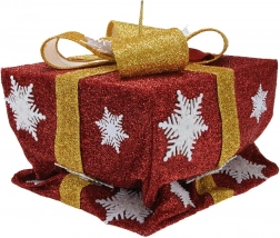 Crvena glitter površina, bijuki ukras pahuljicama i zlatna mašna osiguravaju luksuzan izgled koji osvaja na prvi pogled.