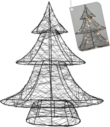 Dizajnersko, metalno božićno drvce u crnoj boji s nježno isprepletenim žičicama i toplim bijelim LED svjetlom stvara ugodnu, blagdansku atmosferu u vašem domu. Zahvaljujući kompaktnoj visini od 40 cm, pristaje dnevnom boravku, spavaćoj sobi i uredu.