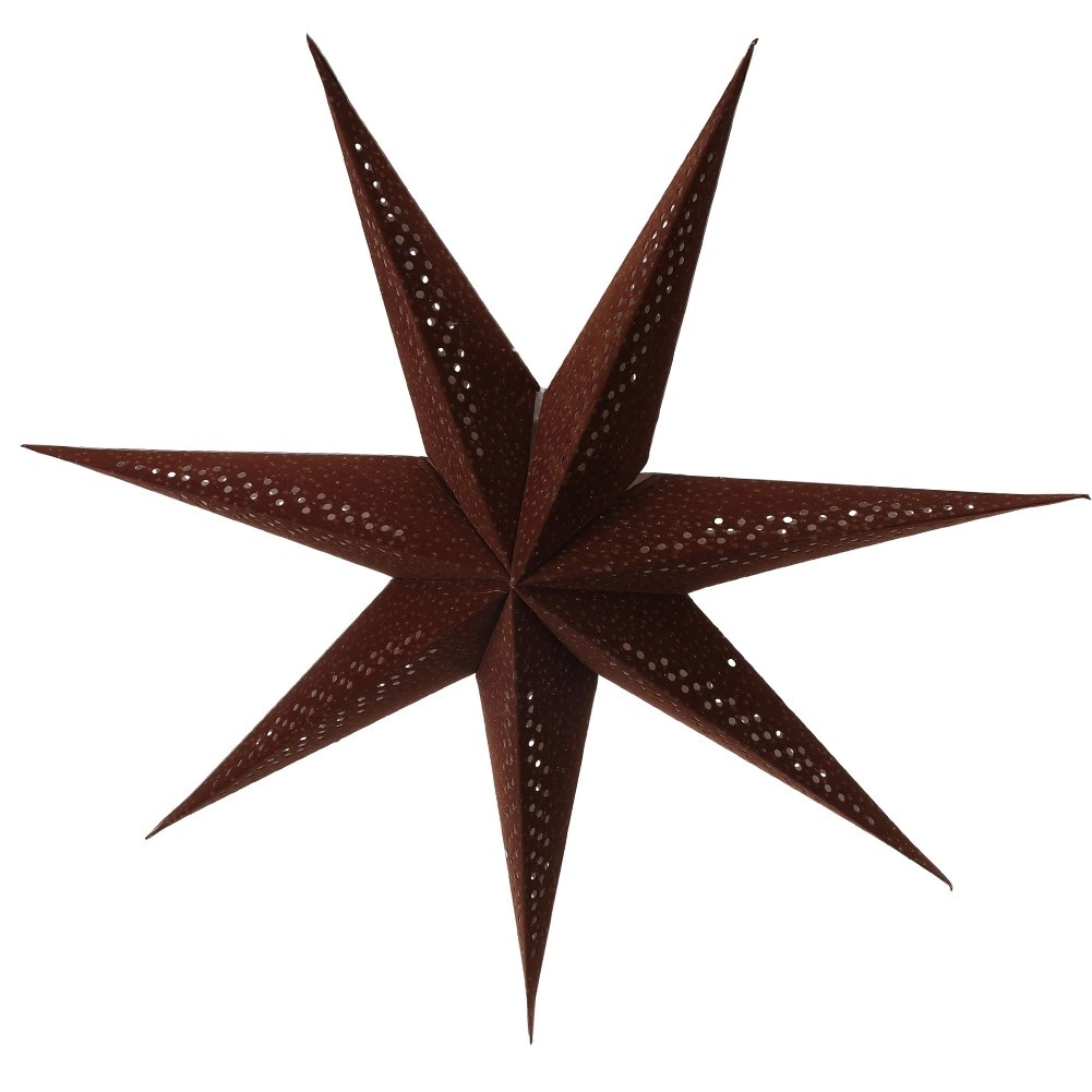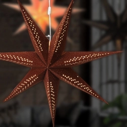 Ova dekorativna papirnata zvijezda u 3D izvedbi postat će dominantan ukras vašeg doma tijekom Božića i tijekom cijele godine. Mekana baršunasta površina u smeđem tonu sa zlatnim sjajnim akcentima djeluje luksuzno, dok perforirani uzorak propušta svjetlo i stvara zanosne svjetlosne efekte.