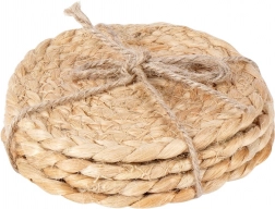Podmetači su ručno ispleteni od meke jute u prirodnoj boji. Materijal je lagan, izdržljiv i stolu daje rustikalan, boho izgled.