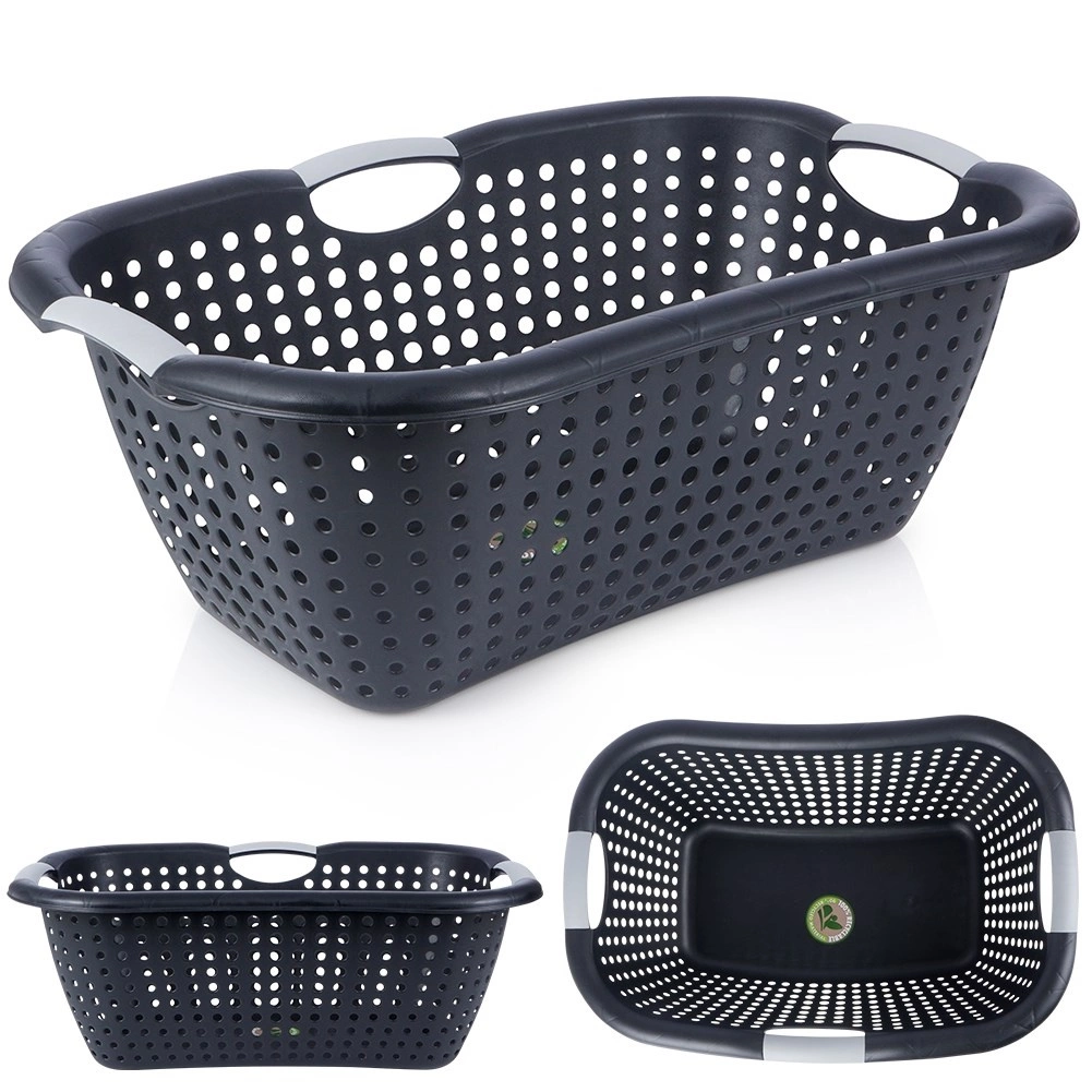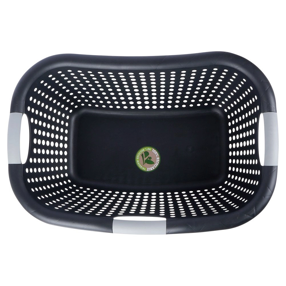 Ova univerzalna košara za rublje u elegantnoj crnoj boji nudi prostranu zapreminu od 26 litara i promišljen oblik za udobnu uporabu kod kuće ili u praonici. Zahvaljujući perforaciji sa strane rublje se bolje provjetrava i ostaje svježe.