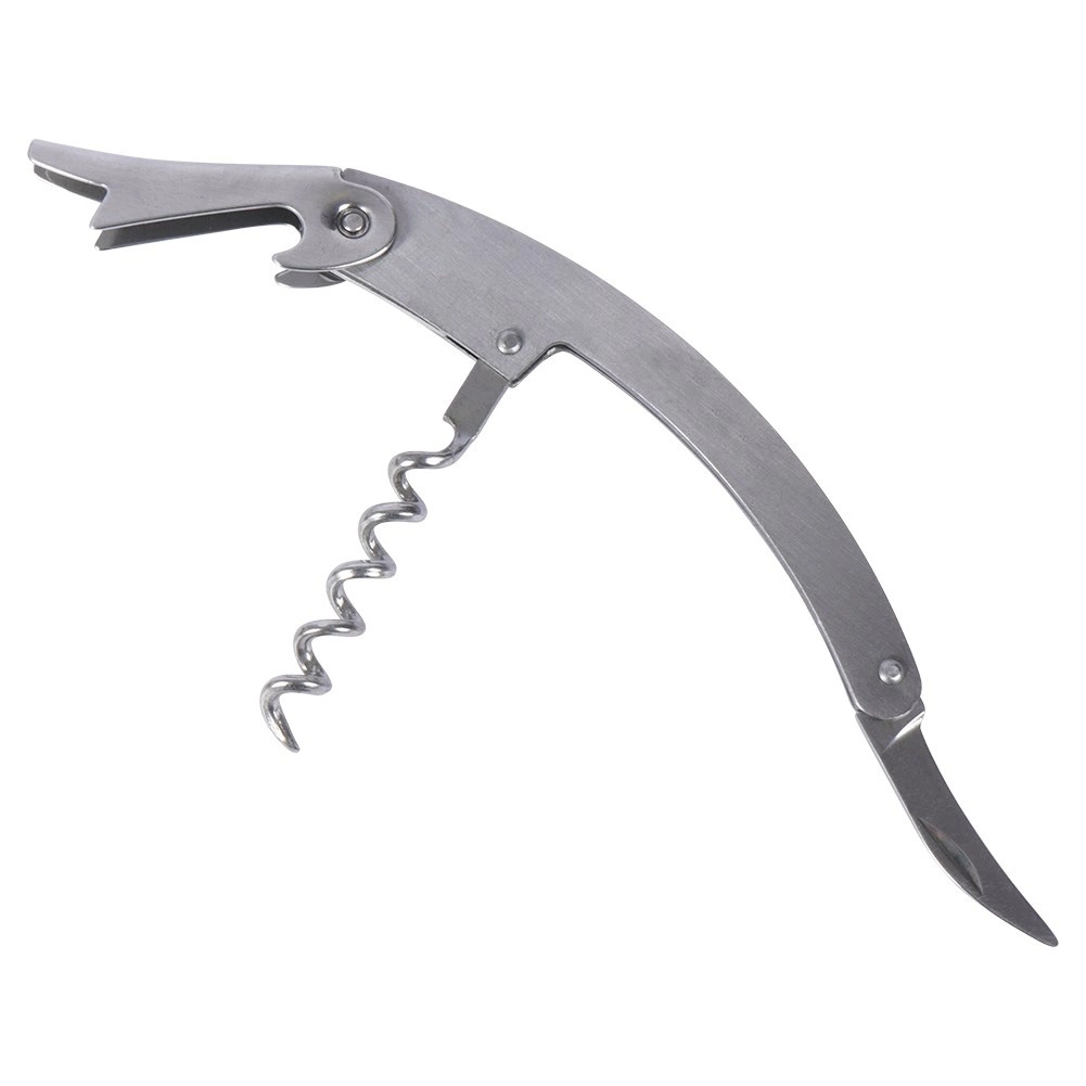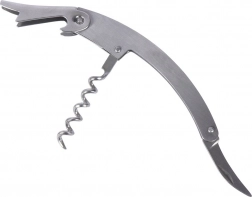 Sklopivi konobarov otvarač s vadičepom, polugom i nožićem za folije omogućuje brzo i sigurno otvaranje boca te skidanje krunskih čepova.
